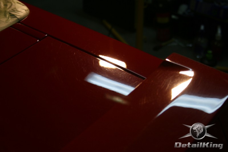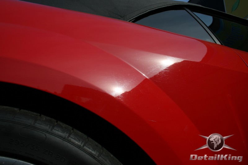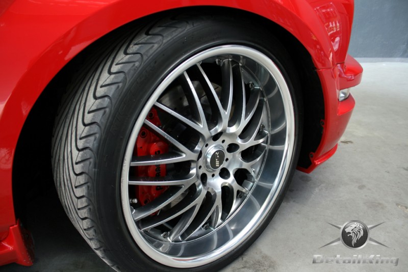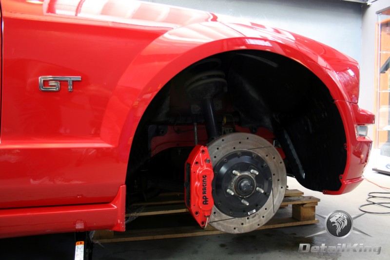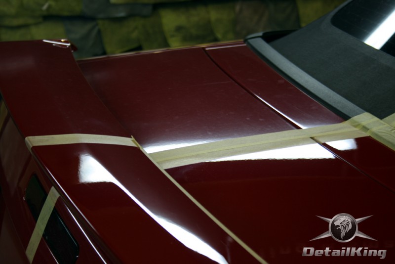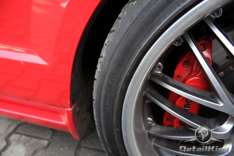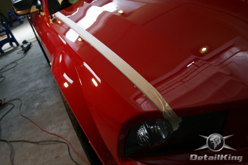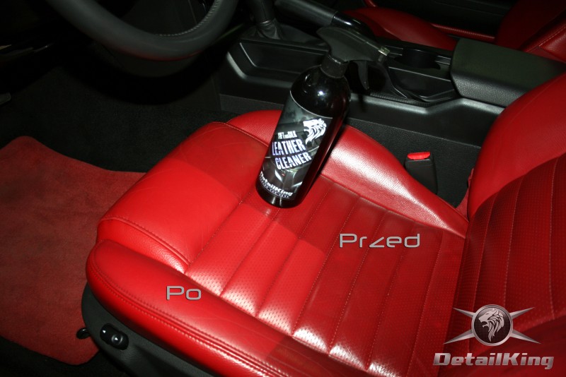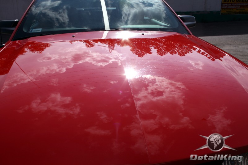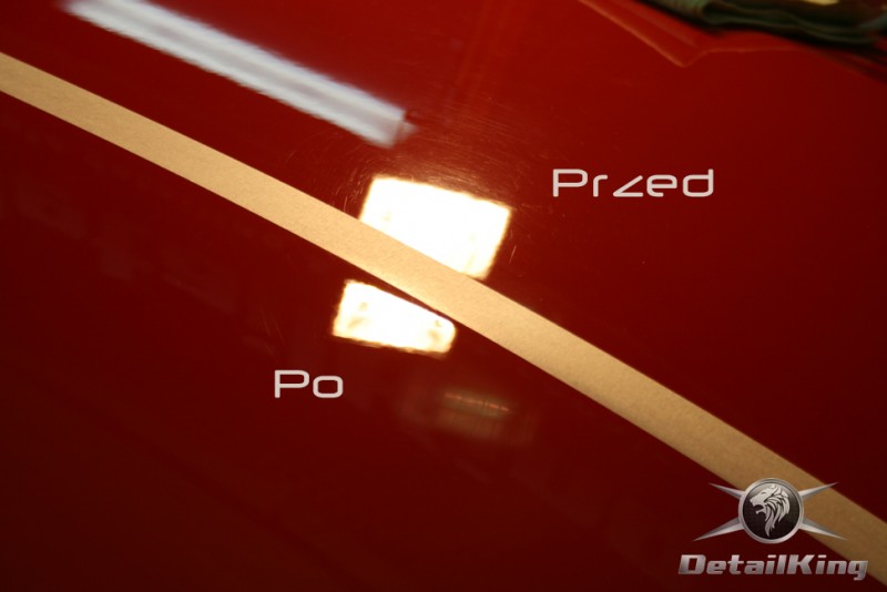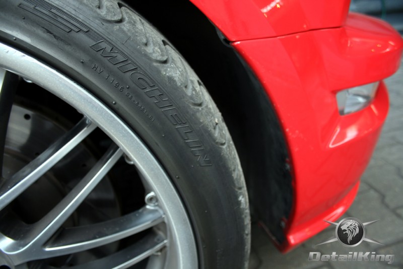 Prezentujemy zdjęcia z procesu przygotowania naszego show-car'a - Forda Mustanga GT. Aby jak najlepiej zaprezentować nasze możliwości, samochód został zrobiony jedynie w połowie. Daje to obraz tego jak samochód może wyglądać po naszych pracach w porównaniu do samochodu nie wypielęgnowanego. Lakier na prawej stronie samochodu został poddany trzy etapowej korekcie, po wcześniejszym oczyszczeniu, a na koniec otrzymał dwu warstwową powłokę zabezpieczającą DetailKing. Felgi oraz nadkola z prawej strony zostały gruntownie oczyszczone i zabezpieczone, a ranty felg wypolerowane. Również winylowy dach został w połowie oczyszczony i zabezpieczony, podobnie jak skórzana tapicerka i plastikowe elementy wnętrza.